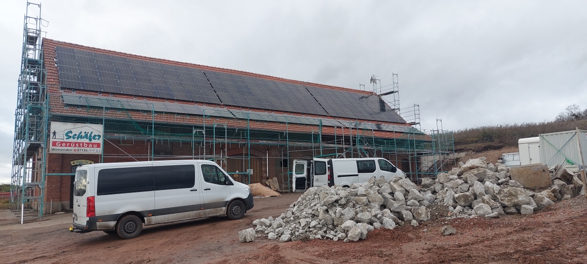 Die Stadtwerke Weinstadt sind Eigentümer der Flächen des ehemaligen Jugendheims Schönbühl. Das ehemalige Stallgebäude bleibt aus Artenschutzgründen bestehen. Die Stadtwerke stellen die Dachflächen der REBE für ein jährliches marktübliches Nutzungsentgelt zur Verfügung. Die Anlage kann eine elektrische Leistung von rund 99 kWp erreichen.Der Strom wird über vorhandene Leitungen in das öffentliche Netz eingespeist. Die Ausrichtung ist größtenteils in Ost-West-Richtung. Die Stadtwerke planen und errichten die Anlage, die von der REBE erworben wird. Die Fertigstellung ist im Januar 2026 geplant.